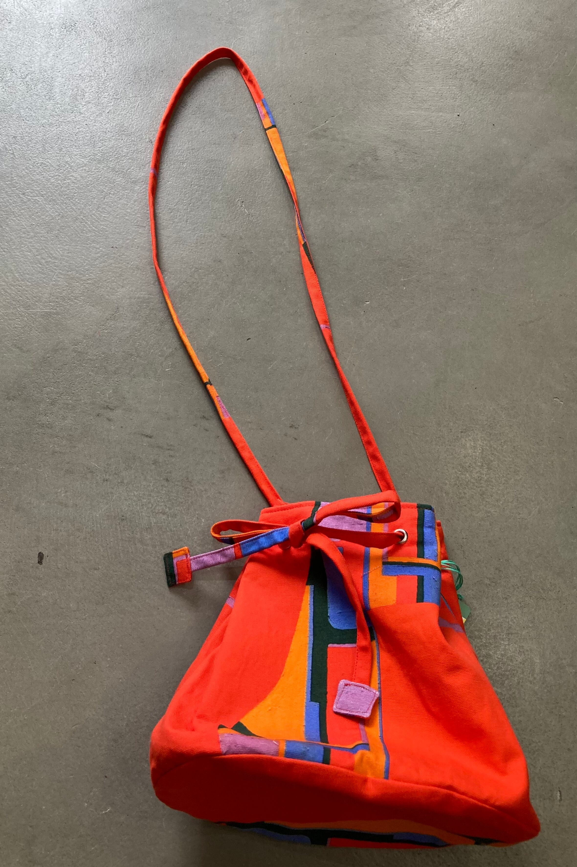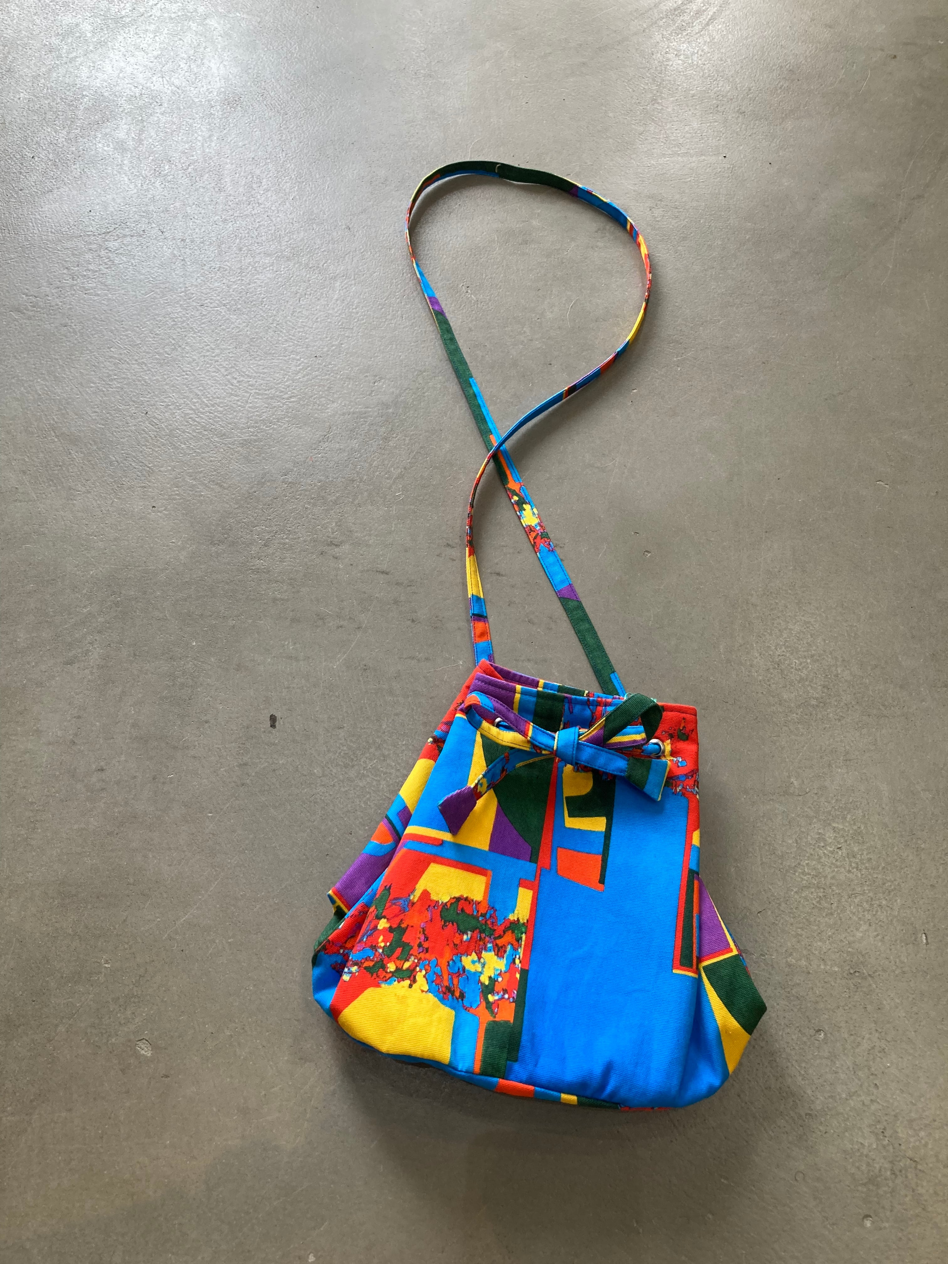 巾着バッグはリボンを解かずに、持ち手をショルダーにしたり、ハンドバッグの長さにすることが可能です。